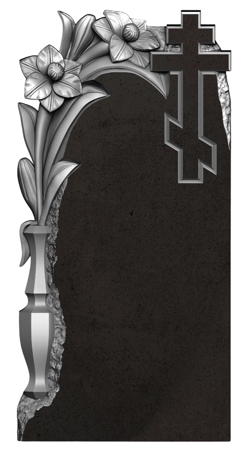 Этот вертикальный памятник привлекает внимание изящной композицией: сбоку расположена ваза с двумя резными цветами, а в углу — крест, символизирующий веру, память и любовь к ушедшим. Гармоничные линии и тщательно проработанные детали придают монументу торжественность и утончённую выразительность, отражая глубокую скорбь и уважение семьи. Элегантный дизайн создаёт ощущение умиротворения и благородства, подчёркивая величие памяти. Высококачественный материал обеспечивает долговечность и сохранение первозданного вида на многие годы. Этот памятник станет достойным местом для вечного почтения и тихих размышлений о родных.