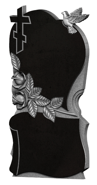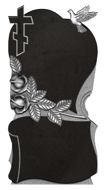 Этот вертикальный памятник объединяет в своей резной композиции три символа: две розы, голубя и крест. Розы олицетворяют любовь и память, голубь — мир и освобождённую душу, крест — веру и вечную надежду. Их сочетание создаёт целостный образ прощания, в котором земные чувства и духовное упование переплетаются, не отрицая, а дополняя друг друга. Каждый элемент — это слово в немом послании, обращённом к ушедшему и к самому себе: о любви, которая не кончается, о вере, что даёт силы, и о мире, который обретён. Памятник предлагает пространство для созерцательного молчания, где можно размышлять об этой связи и находить в ней утешение.