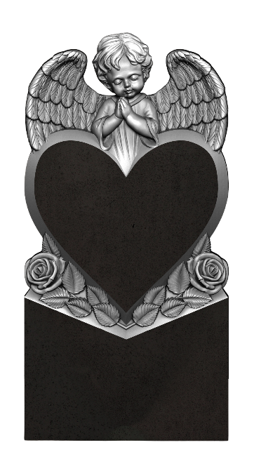 Монумент представляет собой выразительную композицию в форме сердца. Его поверхность украшена искусно выполненными розами, символизирующими вечную любовь и память. У основания композиции расположена фигура маленького ангелочка, склонившего голову в молитвенном жесте. Этот трогательный образ добавляет смирения и духовной глубины общему замыслу. Строгость резных линий сочетается с эмоциональной силой символов, создавая целостный образ преданности и светлой печали. Памятник служит элегантным и вневременным воплощением памяти, предлагая пространство для тихого созерцания и почтения.